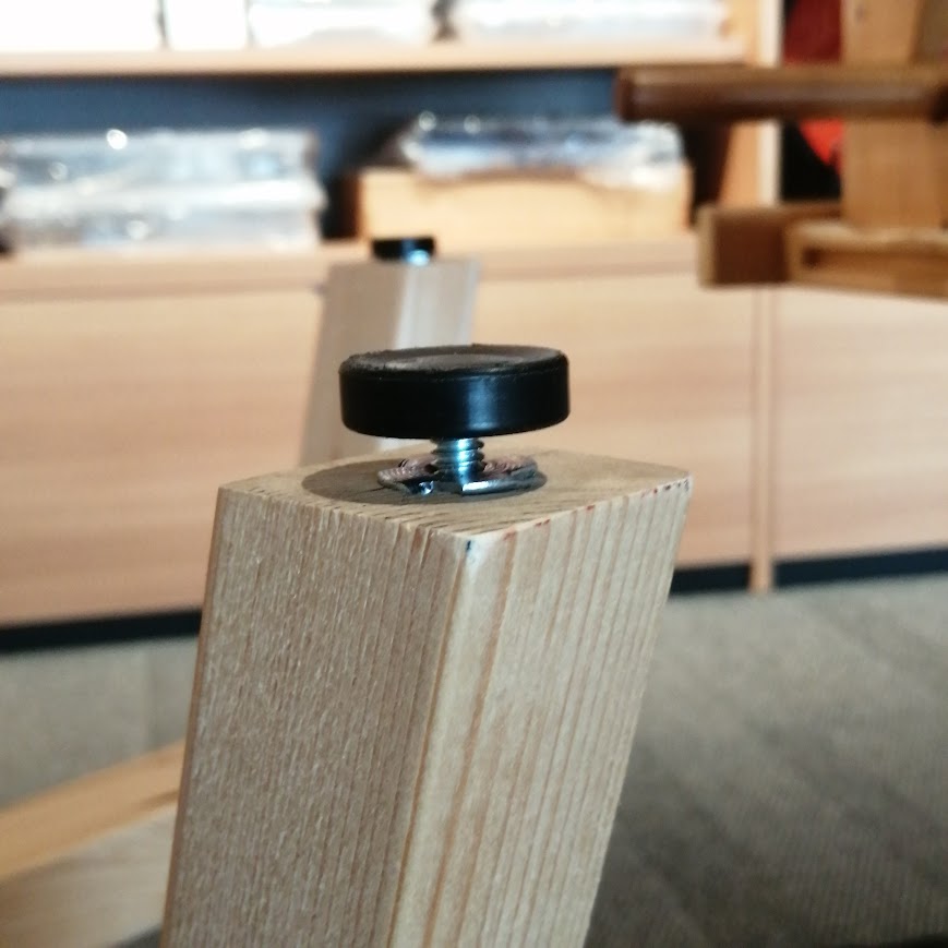 • こね鉢との調和が取れるように、天板を手作業で丸く加工してあります。付属のこね鉢用滑り止めマットも丸く、3つ揃った場合の見た目もバランス良くなっています。また多少段差であればフラットに安定するよう、各脚裏にアジャスターがついております。